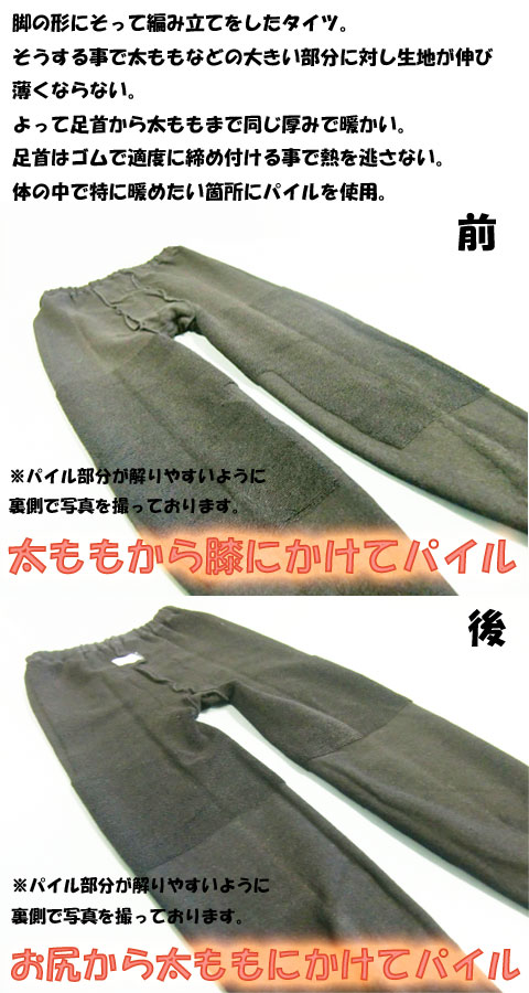 靴下・タイツ・レギンス・トレンカの通販ならクワトロ・エー TOPメンズ タイツ(足無) 紳士部分パイルタイツ 価格: ¥2,076 (税込) 販売期間: サイズ / カラー ブラック M △ L × LL △ 数量: 枚 サイズカラー在庫Mブラック△Lブラック×LLブラック△ 返品についての詳細はこちら レビューはありません 脚の形にそって編み立てをしたタイツ。 そうする事で太ももなどの大きい部分に対し生地が伸び、薄くならない。 よって足首から太ももまで同じ厚みで暖かい。 足首はゴムで適度に締め付ける事で熱を逃さない。 体の中で特に暖めたい箇所にパイルを使用。